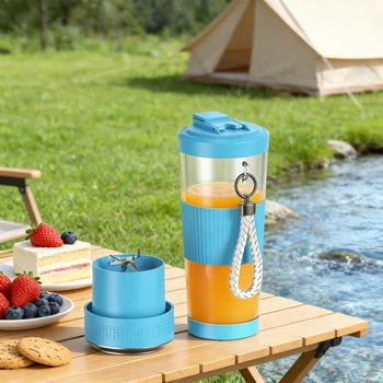 Rechargeable Hand Blender USB Portable Mini Electric Fresh Fruit Juicer Bottom Lid Leak Proof 500ml for Household Outdoor